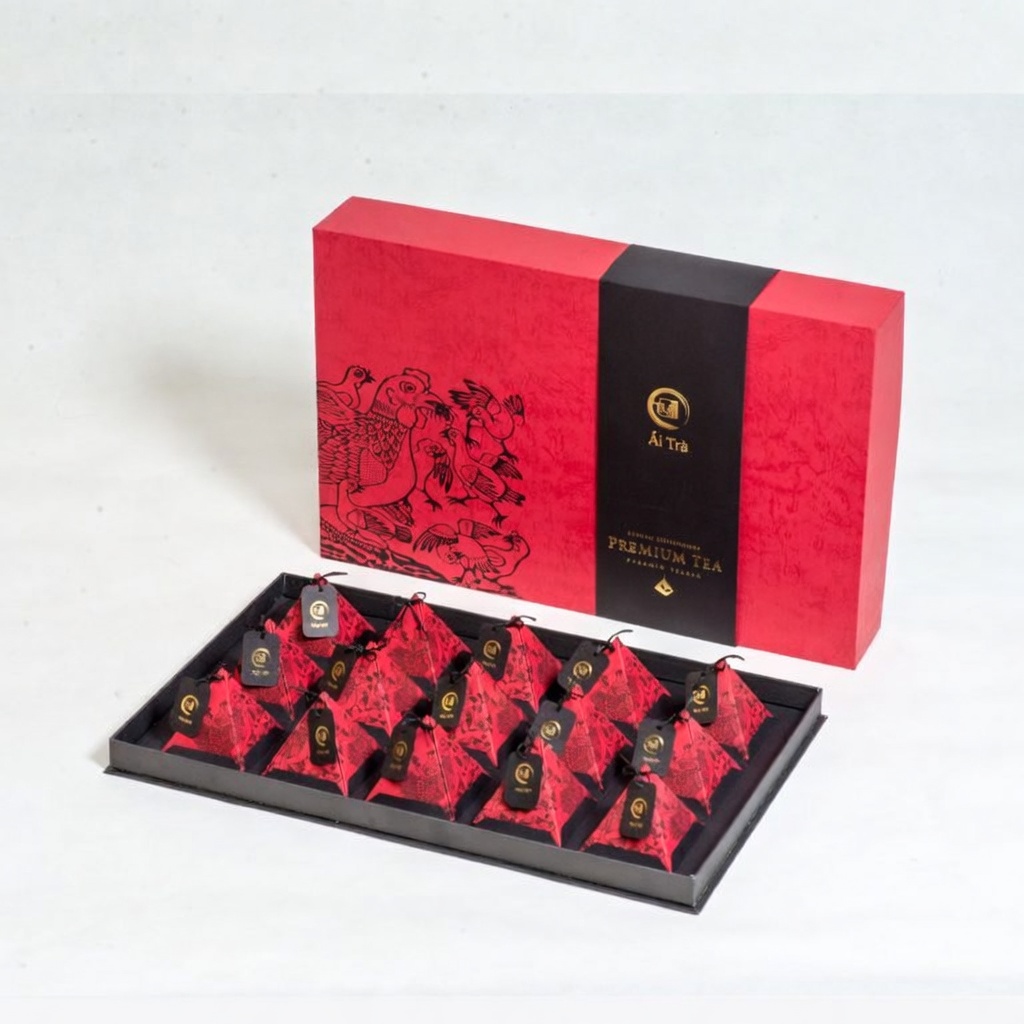 - Tất cả Trà thảo mộc của Ái Trà đều được đóng trong túi nhúng hình kim tự tháp, có không gian cho cánh hoa bung nở trong khi pha.